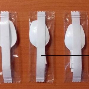 Мы упаковываем складные ложки в прозрачную пищевую пленку с нанесением двустороннего скотча шириной 9мм.
